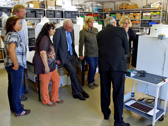 Landrat Herr Joachim Bordt, der erste Kreisrat Herr Rainer Rempe, der Ausschussvorsitzende Maximillian Leroux und Vertreter des Ausschusses aus allen Fraktionen verbrachten eine informative Zeit in der mechanischen und elektronischen Fertigung, erhielten einen kleinen Einblick in aktuelle Geräteentwicklungen, eine Einführung in das Themenfeld der automatischen Niederschlagsmessung und -sammlung und daran angeknüpft Einsicht in einige internationale Projekte.